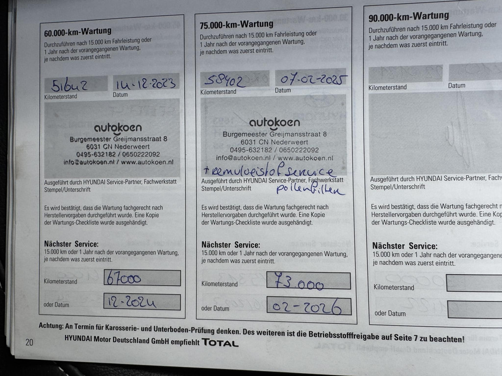 - Onderhoudsboekje (fysiek)